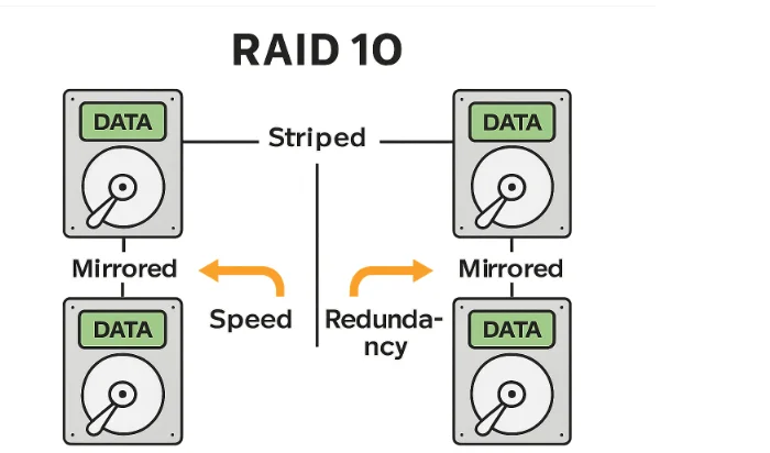 - RAID 10 combines mirroring and striping for superior speed and data protection, effectively reducing risks of data loss and slowdowns.